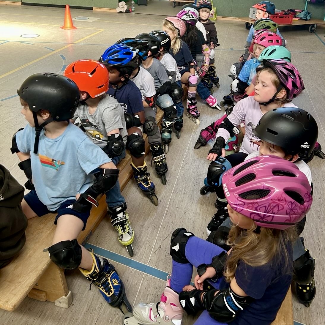 Voller Einsatz und Energie nutzen unsere Klassen der Jahrgangsstufe 2 noch einmal die alte Turnhalle der Ostwallschule, um sich im Inlinerfahren zu erproben.