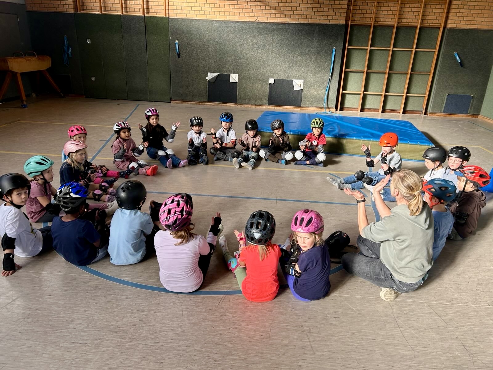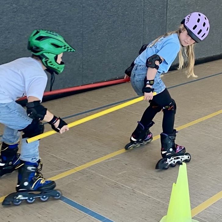Von ersten Fahranfängen bis hin zu kleinen Kunststücken hatten alle Kinder am Ende der Sportstunde neue Erfahrungen im Rollen und Gleiten gesammelt. Mit Musik und viel Spaß konnten alle in ihrem Tempo ihre eigenen Bewegungskompetenzen im Bereich Gleichgewicht und Koordination schulen.