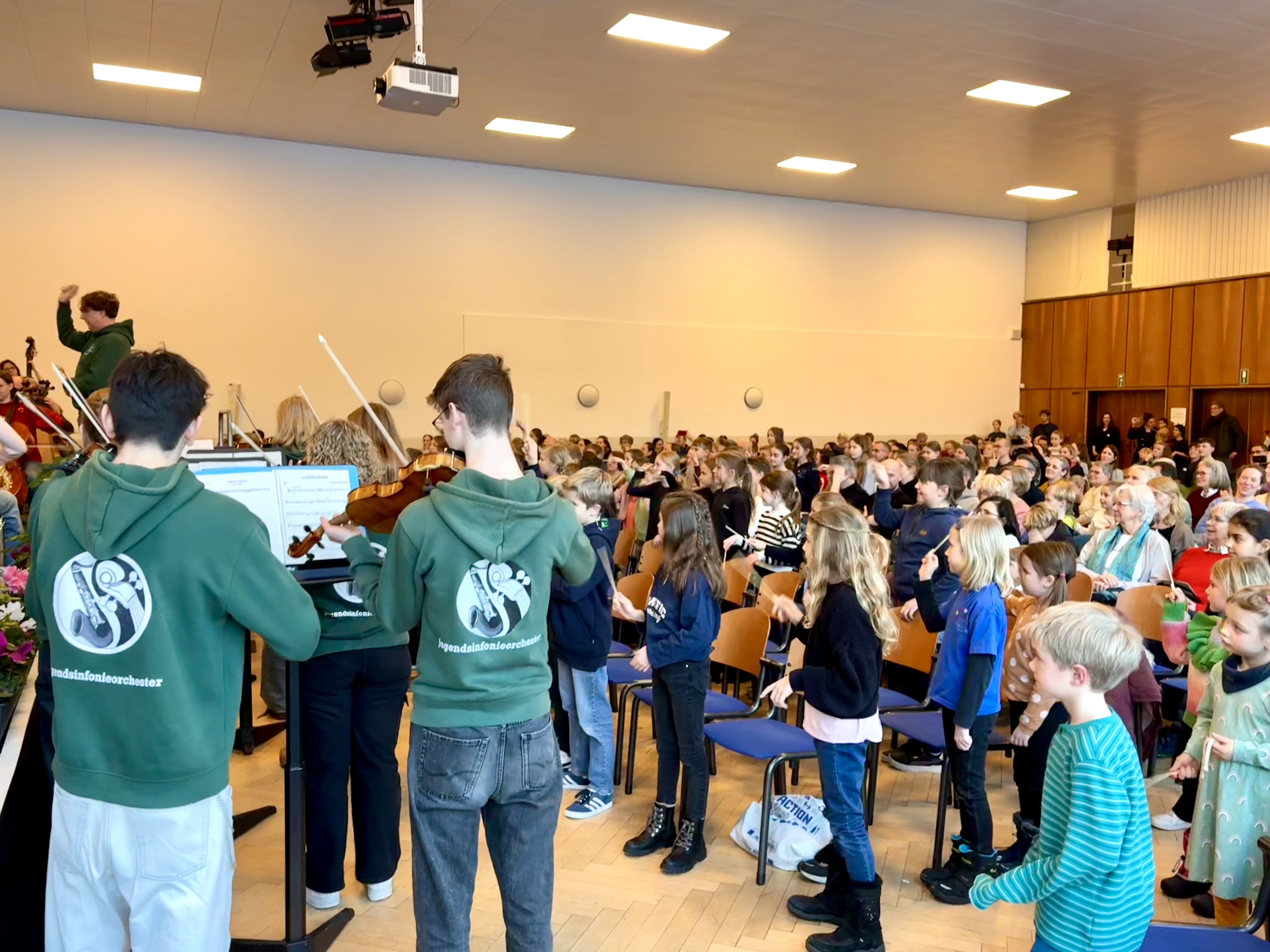 Nicht nur unsere Body Percussion zu einem der Musikstücke sondern auch das Dirigieren beider Orcherster zusammen hat uns wieder einmal gezeigt, gemeinsam Musizieren macht groß wie klein einen Riesenspaß!