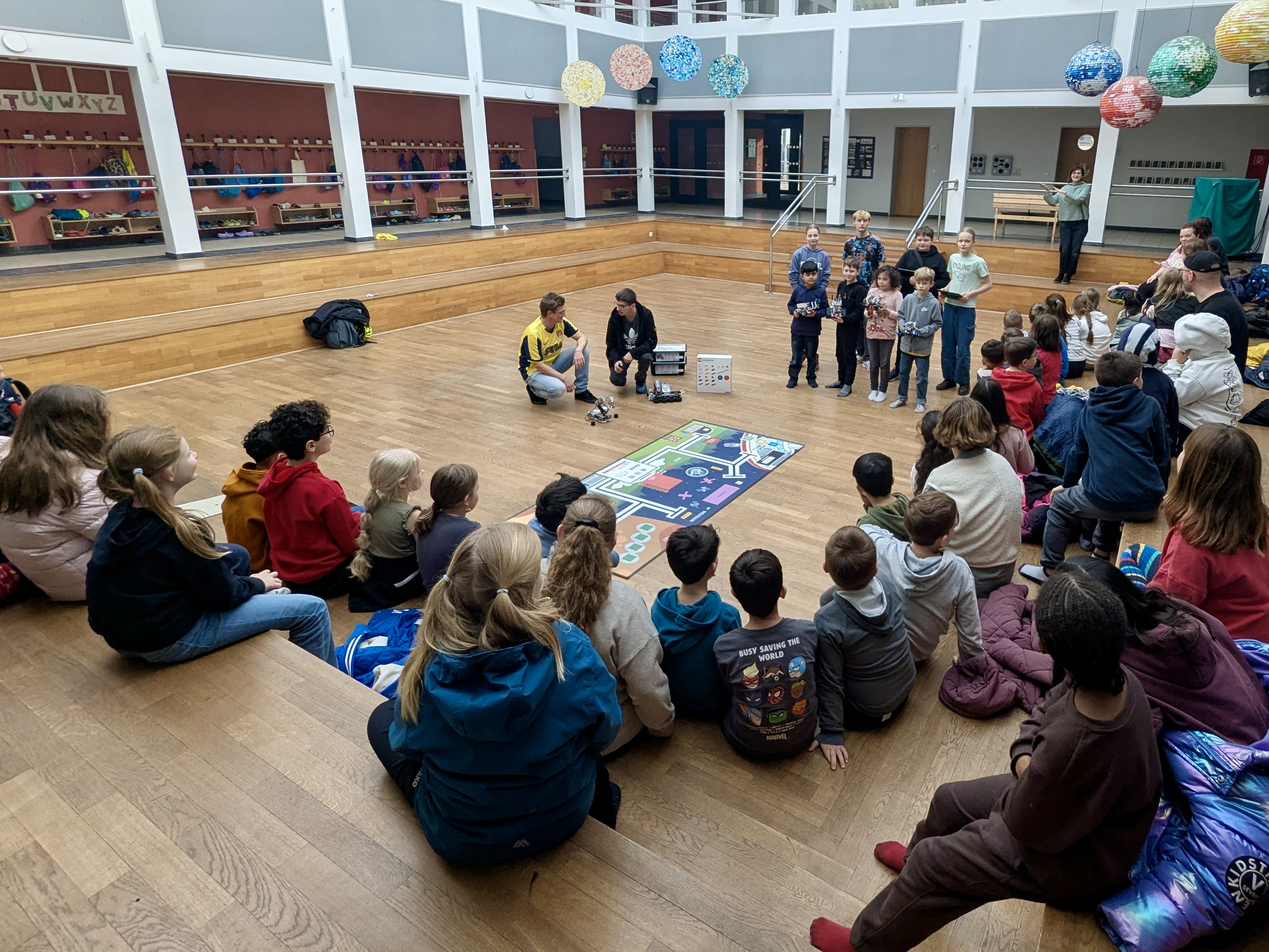 Heute war die Auftaktveranstaltung für den Roboclub, der ab dem 27. Februar jeden Freitag bei uns in der OGS stattfinden wird. Bis zu den Osterferien werden rund 40 Kindern aus den Jahrgängen 3 und 4 im Rahmen der OGS lernen, eigene LEGO-Roboter zu konstruieren und zu programmieren.