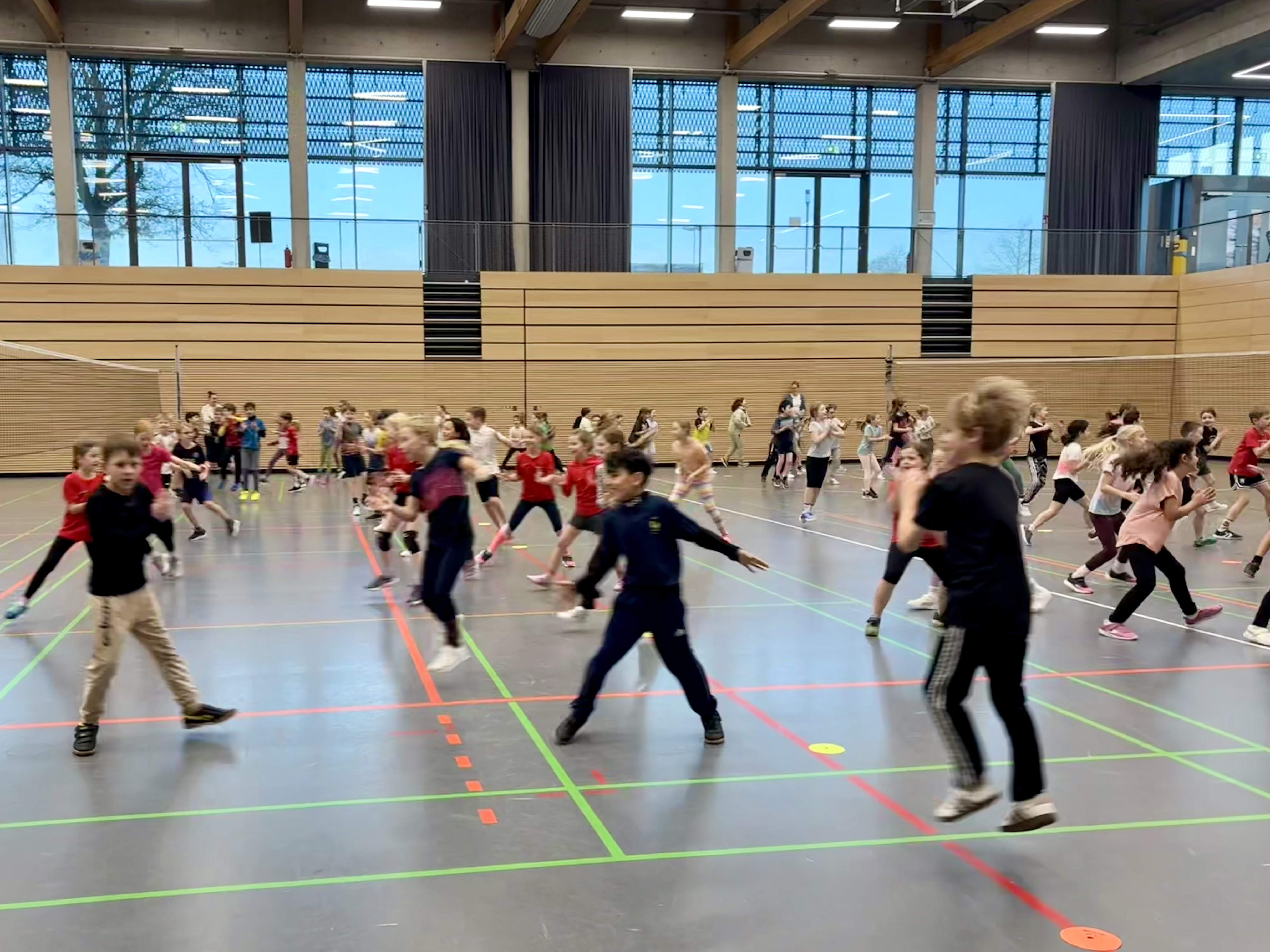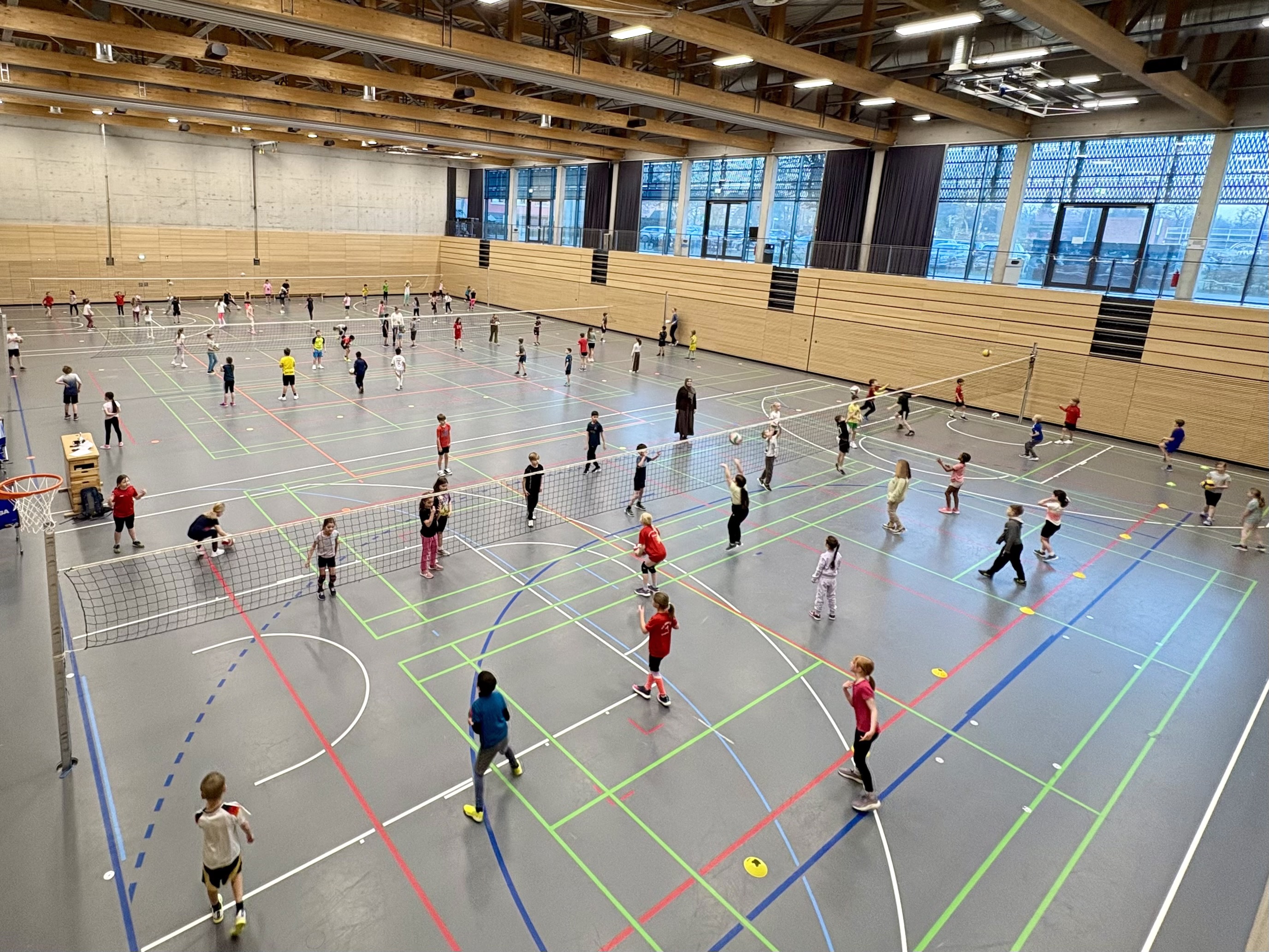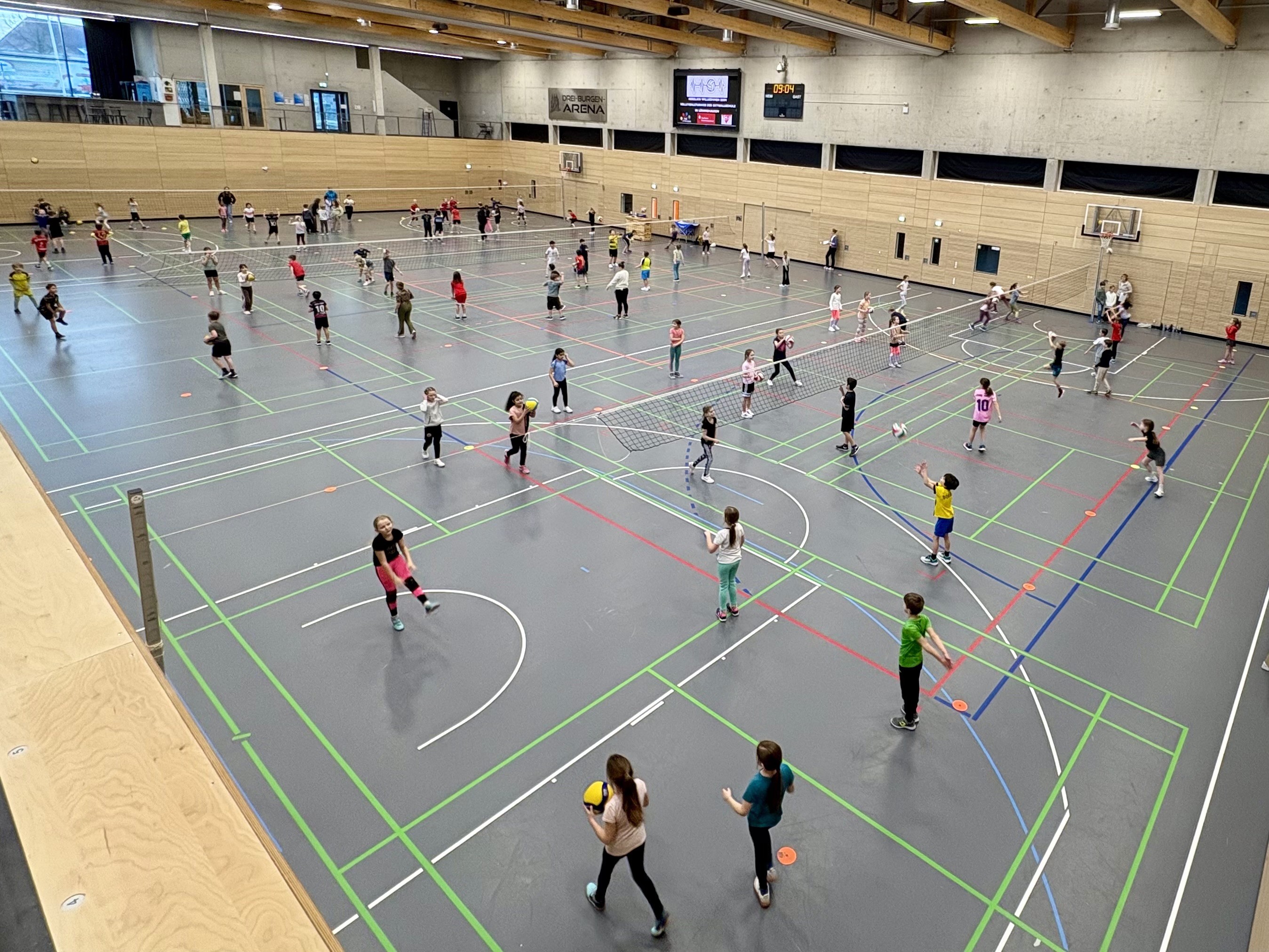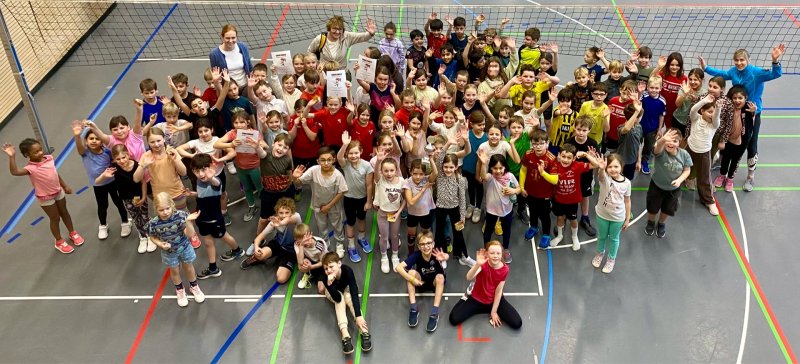 Am Mittwoch, den 4. Februar fand für alle DrittklässlerInnen der Ostwallschule ein großes Volleyballturnier statt. Nach insgesamt 30 Trainingseinheiten durch Niklas Domanik vom Landesstützpunkt in Lüdinghausen, konnten die fünf Klassen der Ostwallschule in der Leistungssporthalle der Drei-Burgen-Arena ihr Können unter Beweis stellen. Über 100 Kinder spielten auf Kleinfeldern in eins gegen eins Duellen gegeneinander. Ob Werfen, Fangen oder auch schon Pritschen, der Spaß und die Bewegung stand für alle Kinder im Vordergrund.